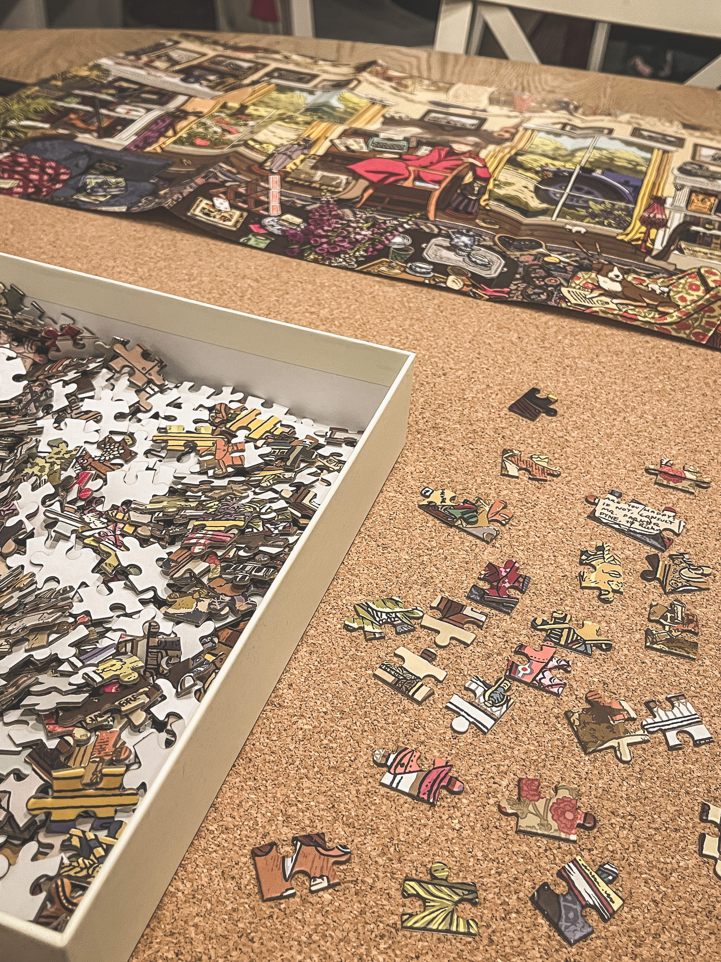 Depuis plusieurs mois mon studio, mon “lieu à moi”, était sens dessus dessous. J’y avais remonté toutes mes bandes-dessinées, et celles-ci jonchaient le sol en hautes piles en attendant que j’achète de nouvelles étagères pour les accueillir. Le désordre, comme il tend à le faire, s’était étendu bien au-delà de ce coin, et il était grand temps que je m’attèle à un tri puis à un gros rangement. C’est donc ce que j’ai entrepris durant le mois de janvier, et je suis ravie du résultat dont je profite aujourd’hui alors que j’écris ces mots, accompagnée d’un gros mug de thé fumant.