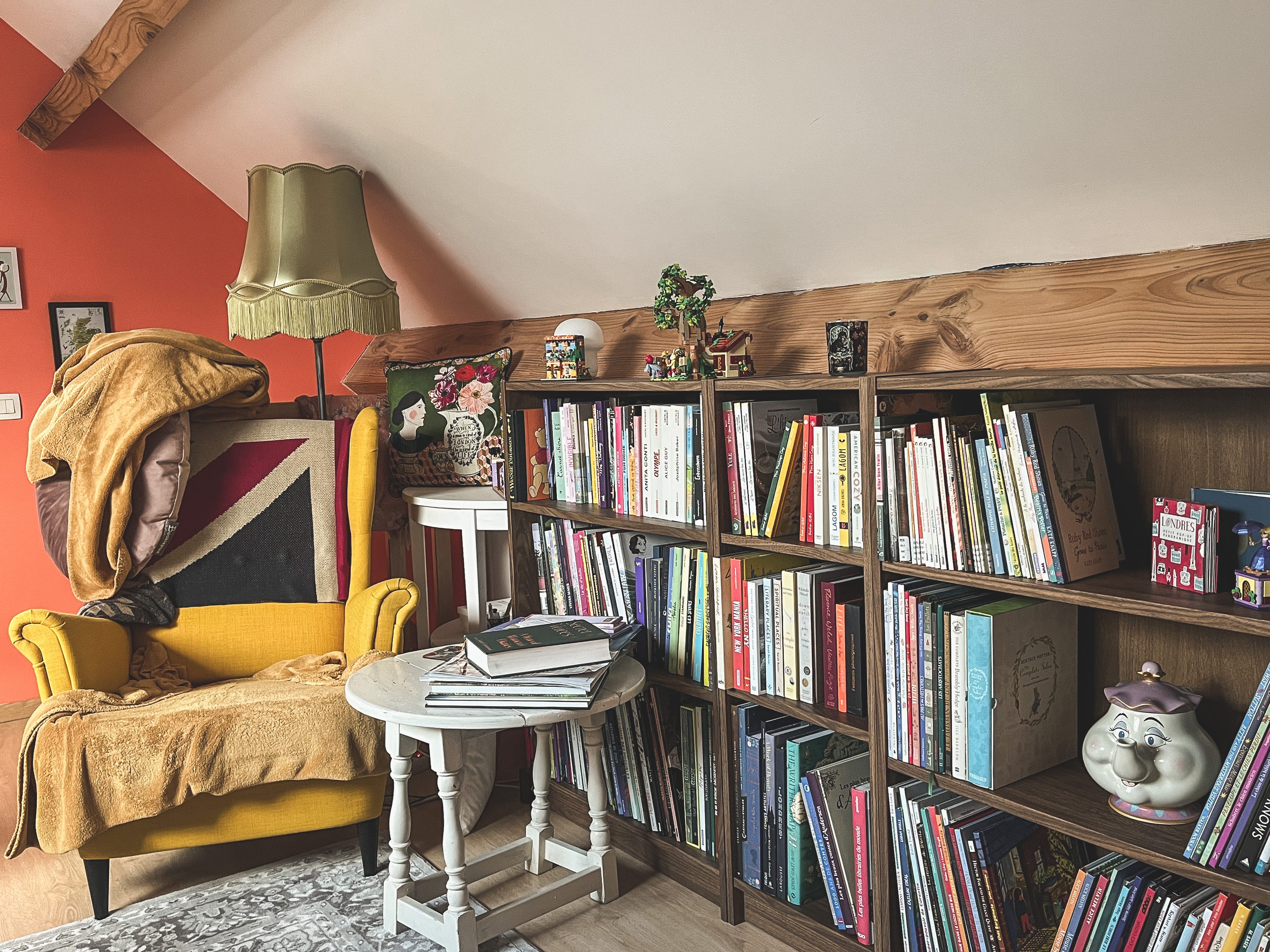 Je tenais aussi à ce que le réaménagement de mon studio reflète l’évolution progressive de mon activité vers l’écriture et le partage autour de la lecture, une passion qui s’est ravivée peu à peu à la découverte de Substack. Je souhaitais donc y installer une partie de mes livres, et me créer un coin lecture agréable où passer du temps. Mes nouvelles étagères accueillent désormais toutes mes bandes-dessinées ainsi que tous mes albums illustrés (vous savez comme je les aime).